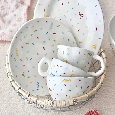 Introducing our Ceramic Dessert Plate With 400ml Coffee Mug Spoon Set, the perfect addition to your kitchenware collection. This exquisite set is designed for those who appreciate the finer things in life and want to make every meal a special occasion.